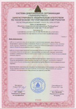 Работаем в соответствии с законодательством РФ, обладаем полным комплектом разрешительной документации на производство работ, готовы предоставить сертификаты качества продукции.